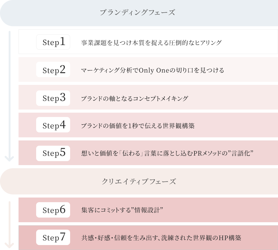 事業の根幹にある価値を丁寧に抽出し、ブランドの土台となる軸を明確にします。